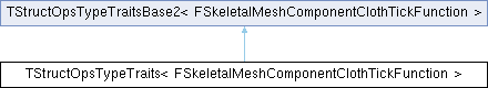 Inheritance diagram for TStructOpsTypeTraits< FSkeletalMeshComponentClothTickFunction >:Public Types | |