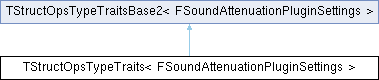 Inheritance diagram for TStructOpsTypeTraits< FSoundAttenuationPluginSettings >:Public Types | |