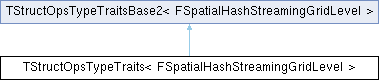 Inheritance diagram for TStructOpsTypeTraits< FSpatialHashStreamingGridLevel >:Public Types | |