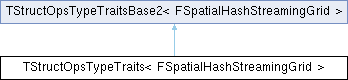 Inheritance diagram for TStructOpsTypeTraits< FSpatialHashStreamingGrid >:Public Types | |
