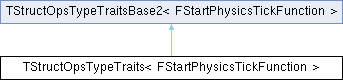 Inheritance diagram for TStructOpsTypeTraits< FStartPhysicsTickFunction >:Public Types | |