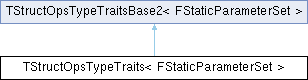 Inheritance diagram for TStructOpsTypeTraits< FStaticParameterSet >:Public Types | |