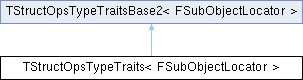 Inheritance diagram for TStructOpsTypeTraits< FSubObjectLocator >:Public Types | |