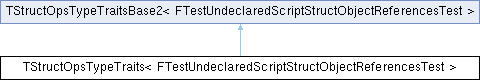 Inheritance diagram for TStructOpsTypeTraits< FTestUndeclaredScriptStructObjectReferencesTest >:Public Types | |