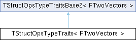 Inheritance diagram for TStructOpsTypeTraits< FTwoVectors >:Public Types | |