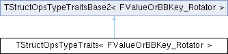 Inheritance diagram for TStructOpsTypeTraits< FValueOrBBKey_Rotator >:Public Types | |