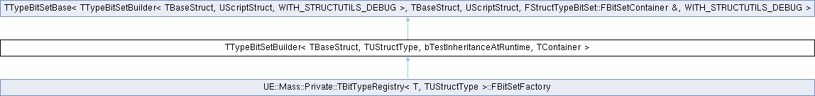 Inheritance diagram for TTypeBitSetBuilder< TBaseStruct, TUStructType, bTestInheritanceAtRuntime, TContainer >:Public Types | |