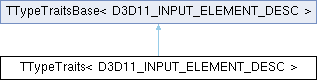 Inheritance diagram for TTypeTraits< D3D11_INPUT_ELEMENT_DESC >:Public Types | |