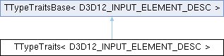 Inheritance diagram for TTypeTraits< D3D12_INPUT_ELEMENT_DESC >:Public Types | |