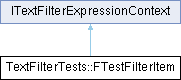 Inheritance diagram for TextFilterTests::FTestFilterItem:Public Member Functions | |