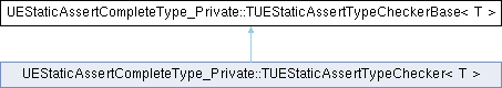 Inheritance diagram for UEStaticAssertCompleteType_Private::TUEStaticAssertTypeCheckerBase< T >:Static Public Member Functions | |