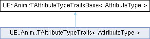 Inheritance diagram for UE::Anim::TAttributeTypeTraitsBase< AttributeType >:Public Types | |