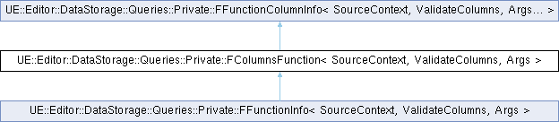Inheritance diagram for UE::Editor::DataStorage::Queries::Private::FColumnsFunction< SourceContext, ValidateColumns, Args >:Public Types | |
