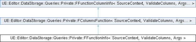 Inheritance diagram for UE::Editor::DataStorage::Queries::Private::FFunctionInfo< SourceContext, ValidateColumns, Args >:Public Types | |