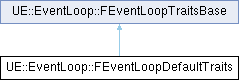Inheritance diagram for UE::EventLoop::FEventLoopDefaultTraits:Public Types | |