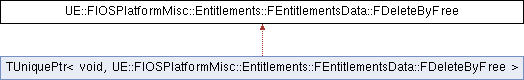 Inheritance diagram for UE::FIOSPlatformMisc::Entitlements::FEntitlementsData::FDeleteByFree:Public Member Functions | |