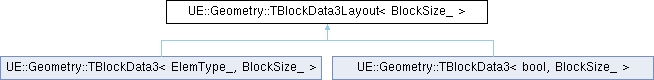 Inheritance diagram for UE::Geometry::TBlockData3Layout< BlockSize_ >:Static Public Member Functions | |
