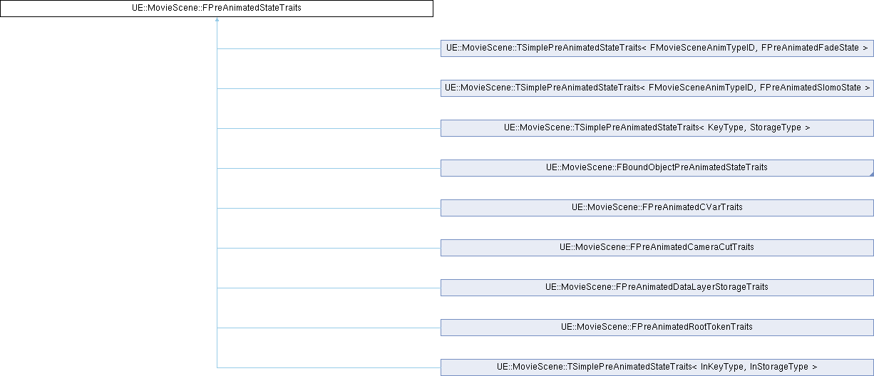 Inheritance diagram for UE::MovieScene::FPreAnimatedStateTraits:Public Types | |