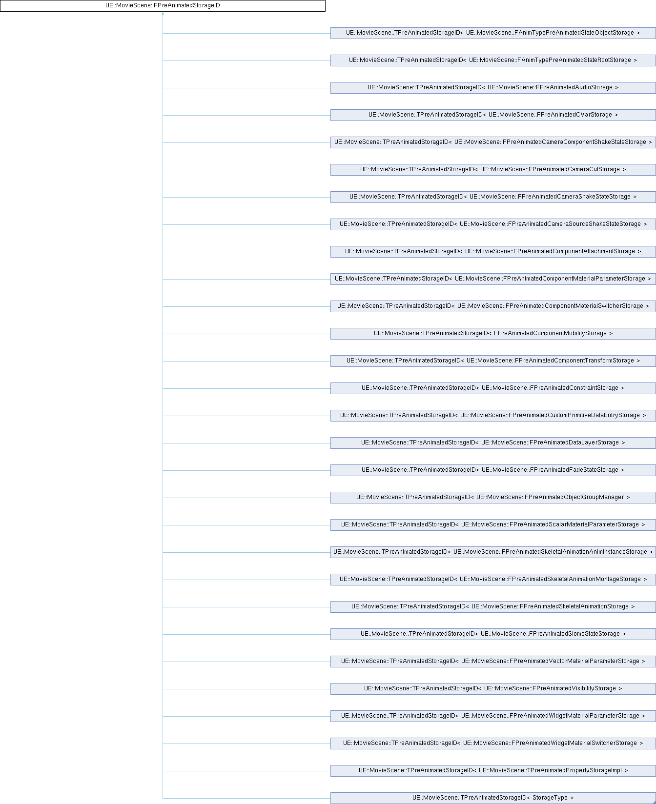 Inheritance diagram for UE::MovieScene::FPreAnimatedStorageID:Public Member Functions | |