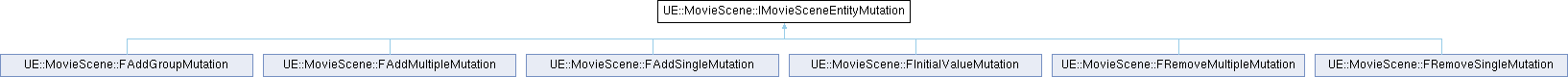 Inheritance diagram for UE::MovieScene::IMovieSceneEntityMutation:Public Member Functions | |