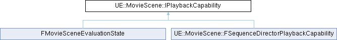 Inheritance diagram for UE::MovieScene::IPlaybackCapability:Public Member Functions | |