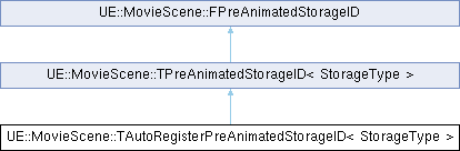 Inheritance diagram for UE::MovieScene::TAutoRegisterPreAnimatedStorageID< StorageType >:Public Member Functions | |
