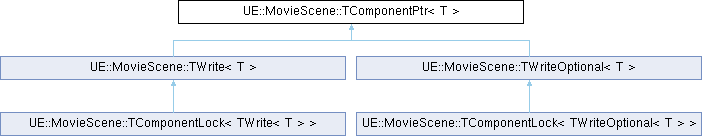 Inheritance diagram for UE::MovieScene::TComponentPtr< T >:Public Types | |