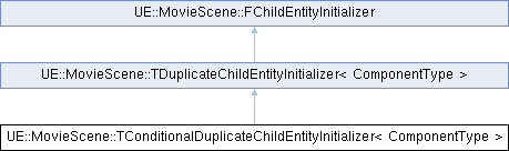Inheritance diagram for UE::MovieScene::TConditionalDuplicateChildEntityInitializer< ComponentType >:Public Member Functions | |
