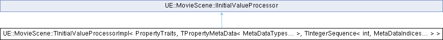 Inheritance diagram for UE::MovieScene::TInitialValueProcessorImpl< PropertyTraits, TPropertyMetaData< MetaDataTypes... >, TIntegerSequence< int, MetaDataIndices... > >:Public Types | |