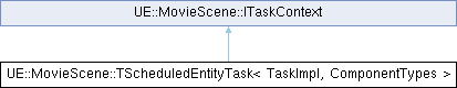 Inheritance diagram for UE::MovieScene::TScheduledEntityTask< TaskImpl, ComponentTypes >:Public Member Functions | |