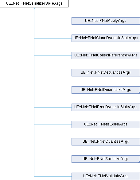 Inheritance diagram for UE::Net::FNetSerializerBaseArgs:Public Attributes | |