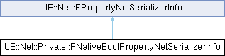 Inheritance diagram for UE::Net::Private::FNativeBoolPropertyNetSerializerInfo:Public Member Functions | |