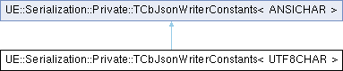 Inheritance diagram for UE::Serialization::Private::TCbJsonWriterConstants< UTF8CHAR >: