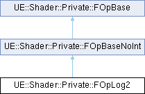 Inheritance diagram for UE::Shader::Private::FOpLog2:Public Member Functions | |