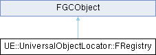 Inheritance diagram for UE::UniversalObjectLocator::FRegistry:Public Member Functions | |