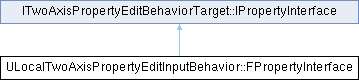 Inheritance diagram for ULocalTwoAxisPropertyEditInputBehavior::FPropertyInterface:Public Types | |