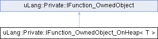 Inheritance diagram for uLang::Private::IFunction_OwnedObject_OnHeap< T >:Public Member Functions | |