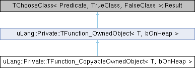 Inheritance diagram for uLang::Private::TFunction_CopyableOwnedObject< T, bOnHeap >:Public Member Functions | |