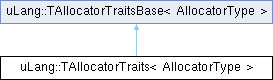 Inheritance diagram for uLang::TAllocatorTraits< AllocatorType >:Additional Inherited Members | |