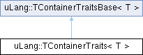 Inheritance diagram for uLang::TContainerTraits< T >:Additional Inherited Members | |