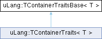 Inheritance diagram for uLang::TContainerTraitsBase< T >:Public Types | |