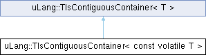 Inheritance diagram for uLang::TIsContiguousContainer< const volatile T >:Additional Inherited Members | |