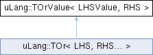 Inheritance diagram for uLang::TOrValue< LHSValue, RHS >: